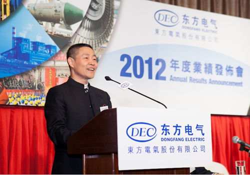在业绩说明会上,斯泽夫首先致辞,他说:“2012年是不平凡的一年,对于东方电气来说应该是一个迎接挑战和转型升级的一年。在大家的共同关心下,在我们全体员工的共同努力下,东方电气我认为还是取得了比较好的成绩。发电设备的产量再次居世界第一;燃机项目在市场上成了中国的领跑者;核电的科研与市场都取得了新的突破;服务的产业快速发展。当然,这些快速的发展取得了一些成绩,同时也留给了我们很多的无奈和遗憾。世界经济的疲软和乏力,使我们在国际市场上的竞争受到了严峻的挑战;国内的产业结构的调整、基础建设的放慢以及能源结构的调整,使我们这个行业的竞争进入了一个白热化的阶段;由于上述的原因,使我们东方电气主营业务整体上市以来首次出来了负增长。但是我们仍然克服了重重的困难,突出了主业,优化了配置,精细了管理,攻坚克难,开拓进取,基本保持了一个平稳、持续的发展的态势。”